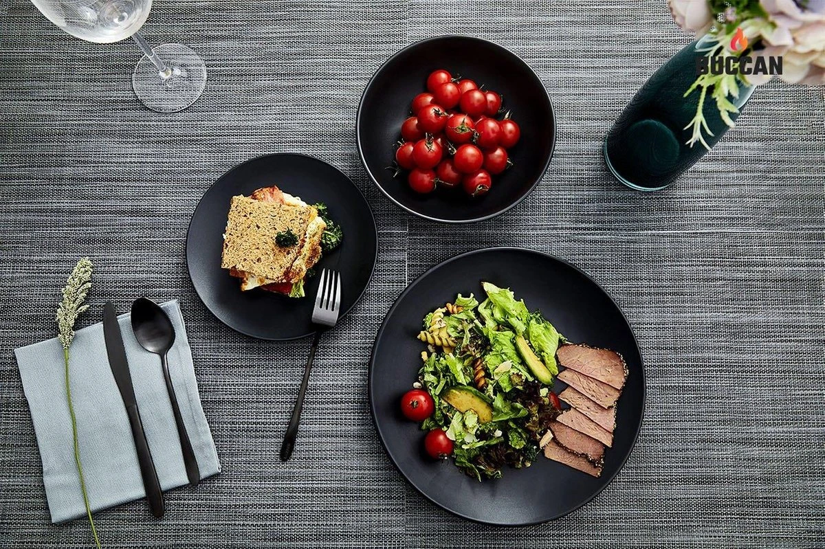 Op elk moment van de dag wordt servies gebruikt, van ontbijt, lunch tot diner. Dit mat zwarte Buccan servies helpt je niet alleen de dag door, het is ook een elegante toevoeging aan je eettafel. De matte zwarte afwerking van de borden is een uniek visueel kenmerk, dat zeker de finishing touch is voor jouw dinerervaring.