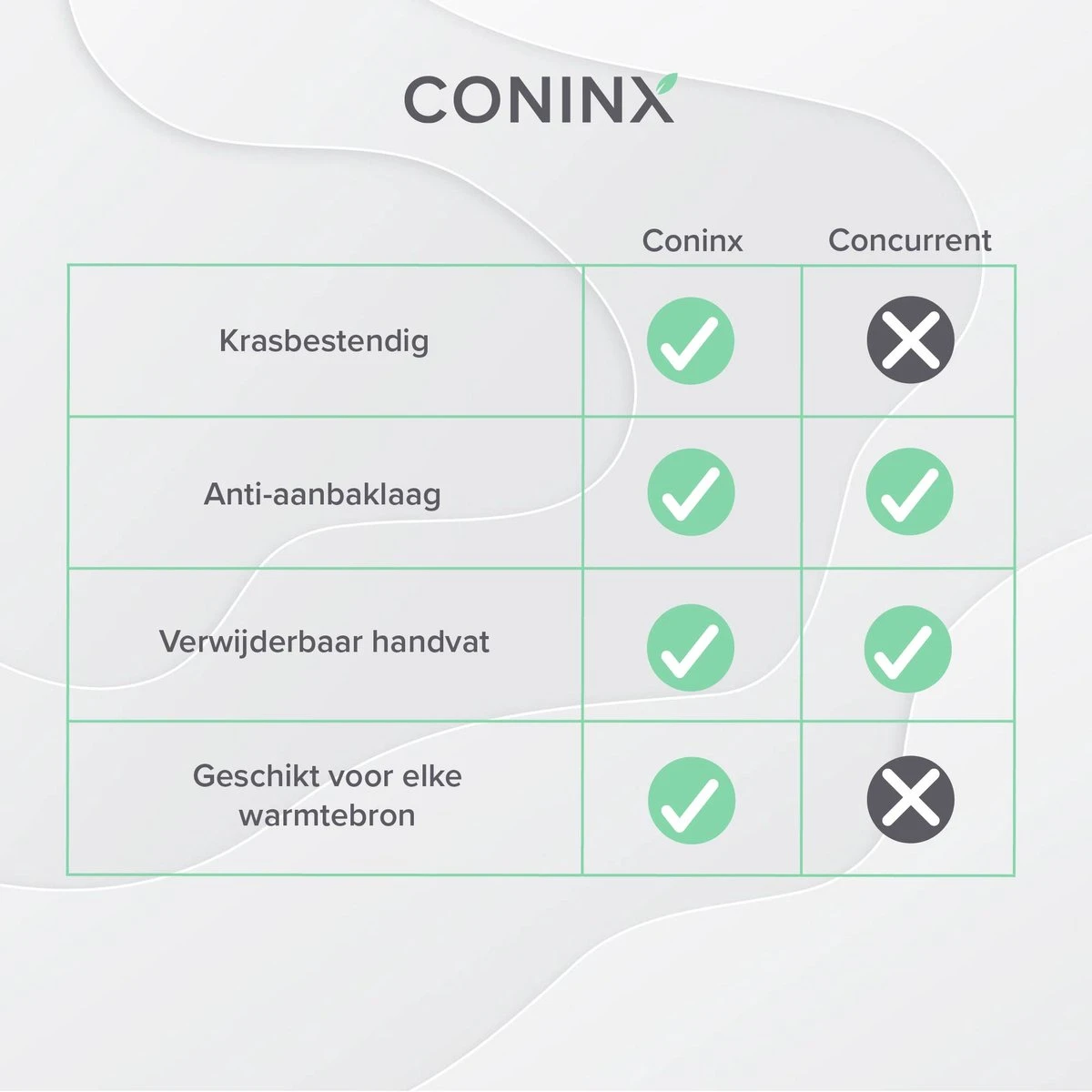 Wij zijn 100% overtuigd van de goede kwaliteit en uitstekende functionaliteit van onze grillpannen. Nu is het onze taak om jou te overtuigen van de kwaliteiten van dit product. Daarom bieden wij drie jaar ‘niet goed, geld terug’-garantie op ons product. Ben je dus niet tevreden met de pan? Dan krijg je van Coninx gewoon je geld terug, zonder vragen te stellen. Je geniet van een volledig risicovrije aankoop, dus waar wacht je nog op?