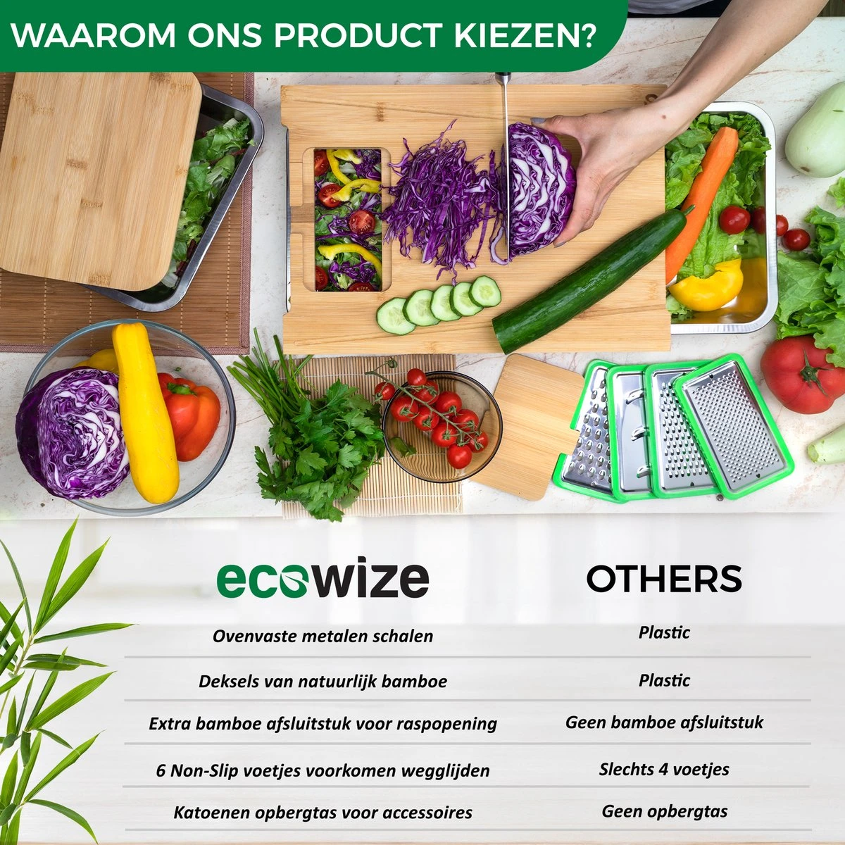 Waarom kiezen voor de Ecowize 3-in-1 bamboe snijplank?