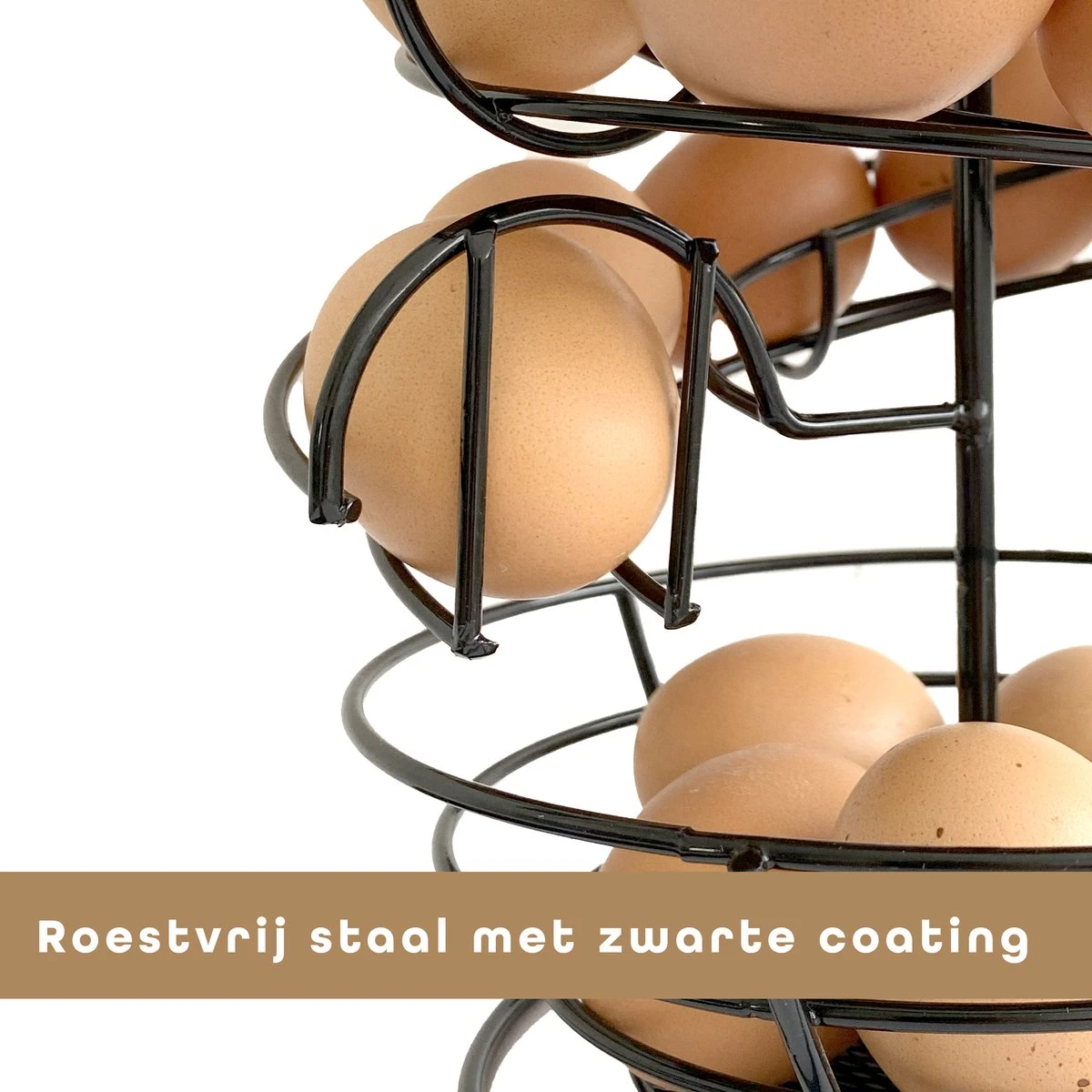 Onderaan voorzien van een extra mandje voor klein fruit, koffie cups of nog meer eieren. Lees hieronder de voordelen van ons eierrek.